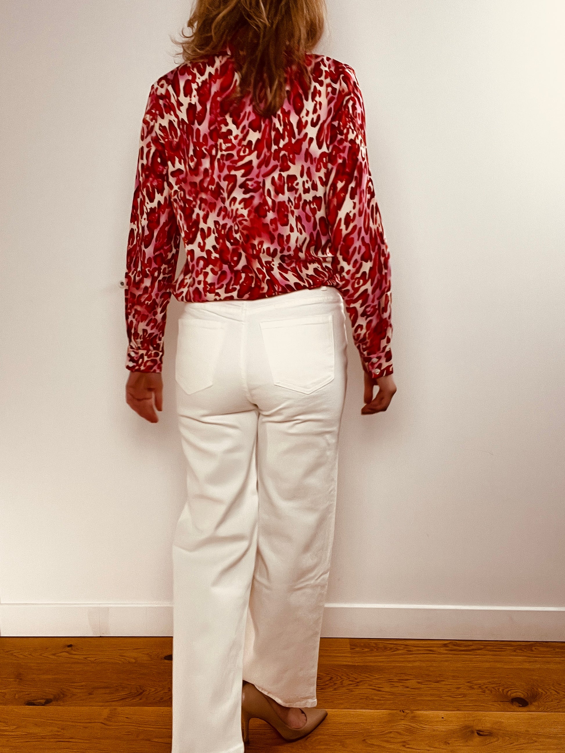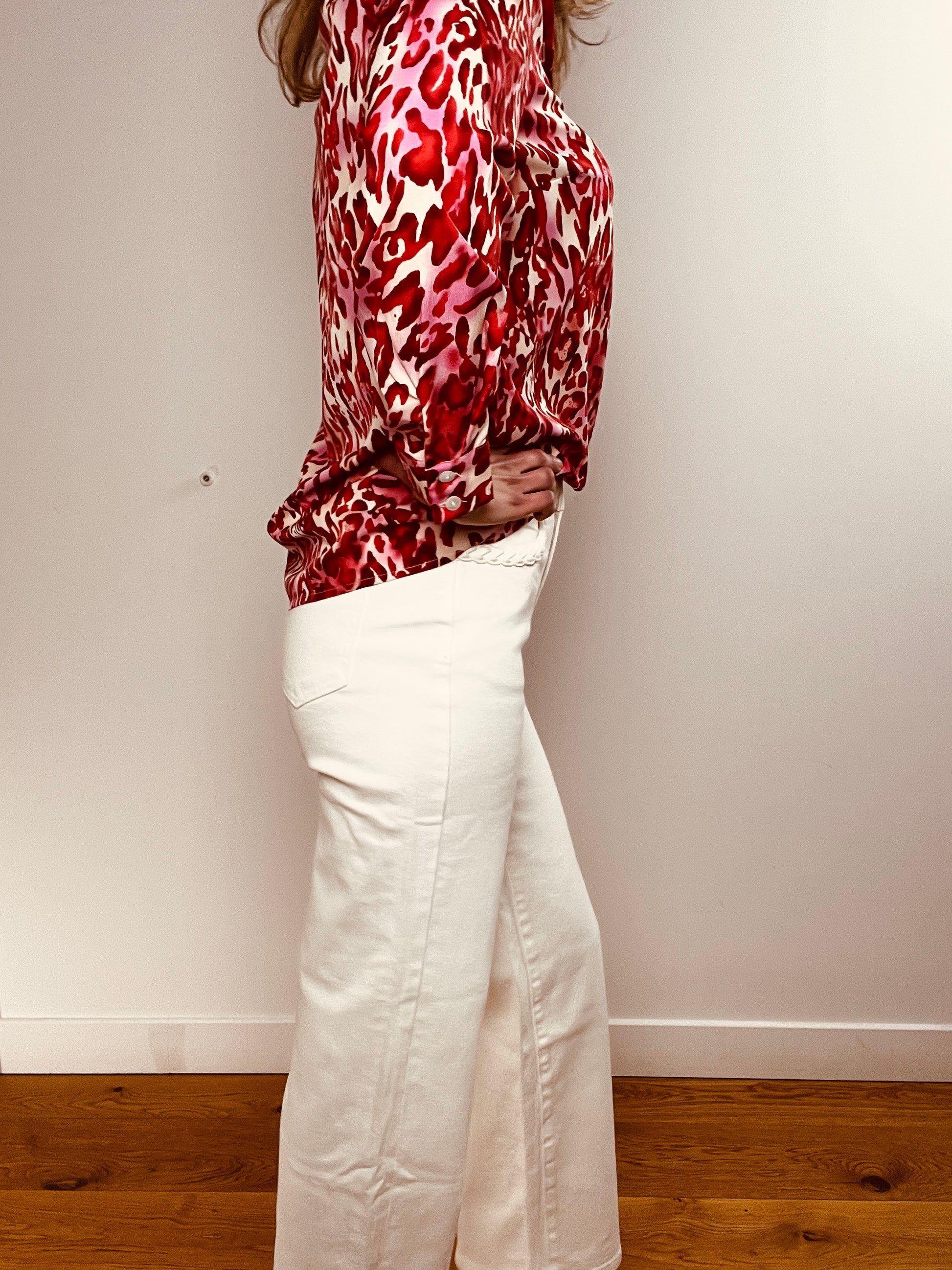 - Chemise élégante léopard aux nuances de rouges